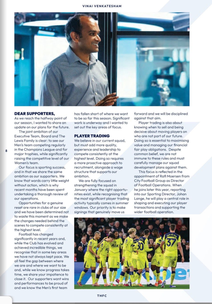 トッテナム・ホットスパーのヴィナイ・ベンカテシャムCEOは、シーズンの中間地点において、将来の計画に関する最新情報をサポーターへ発信しました。エグゼクティブ・チーム、取締役会、およびルイス・ファミリーは、男子チームが恒常的にチャンピオンズリーグで競い主要なタイトルを目指すこと、そして女子チームの競争レベルを著しく引き上げるという明確な野心を抱いています。