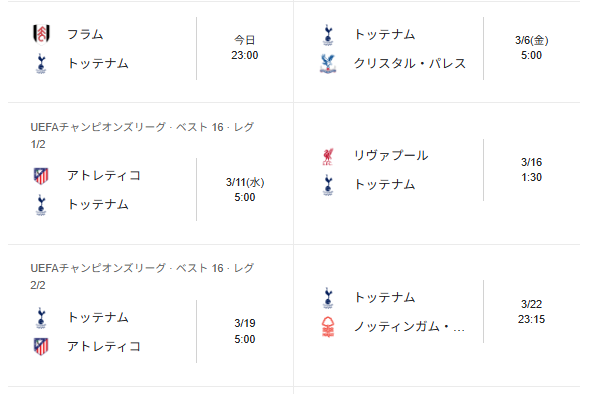 その直後のリバプール戦(アウェイ)は難所だが、週中に試合を戦うアーセナルやチェルシーとは異なり、スパーズには4日間の休養期間がある。この休息のアドバンテージを活かせるかが、アンフィールドでの久々の勝利への鍵となる。